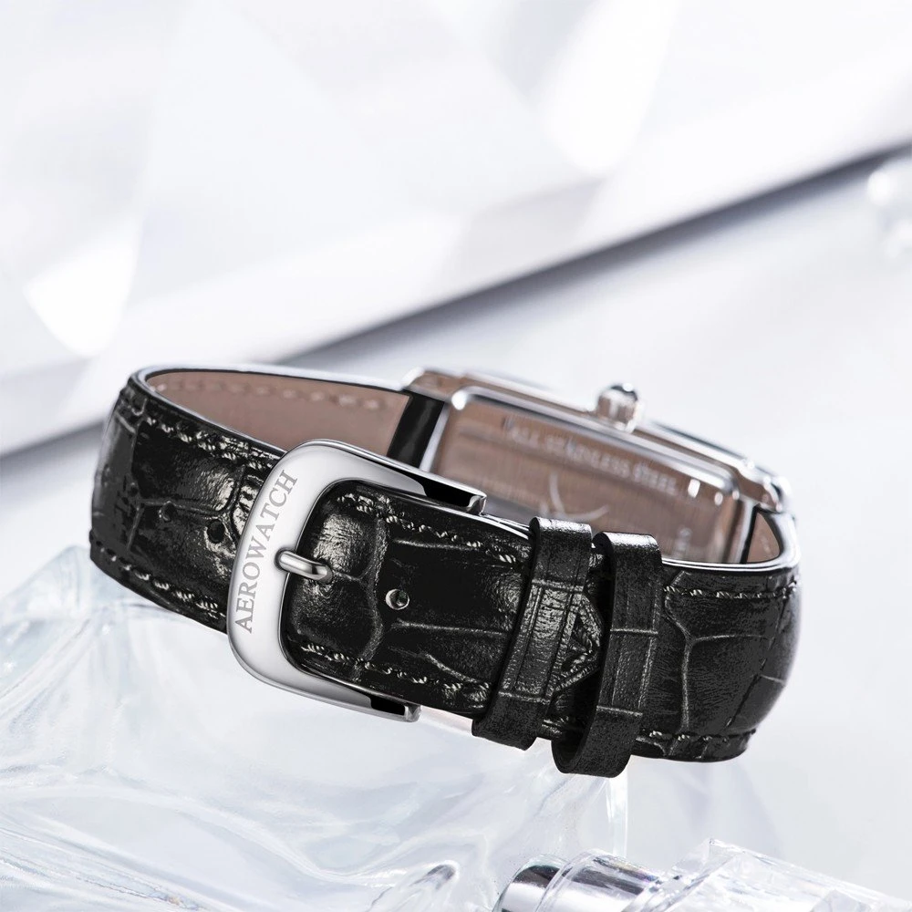 This Aerowatch watch has a case made of stainless steel with a diameter of 27.5 mm and is fitted with a leather band. Inside the case lies a Ronda movement and the watch features a Sapphire crystal.
