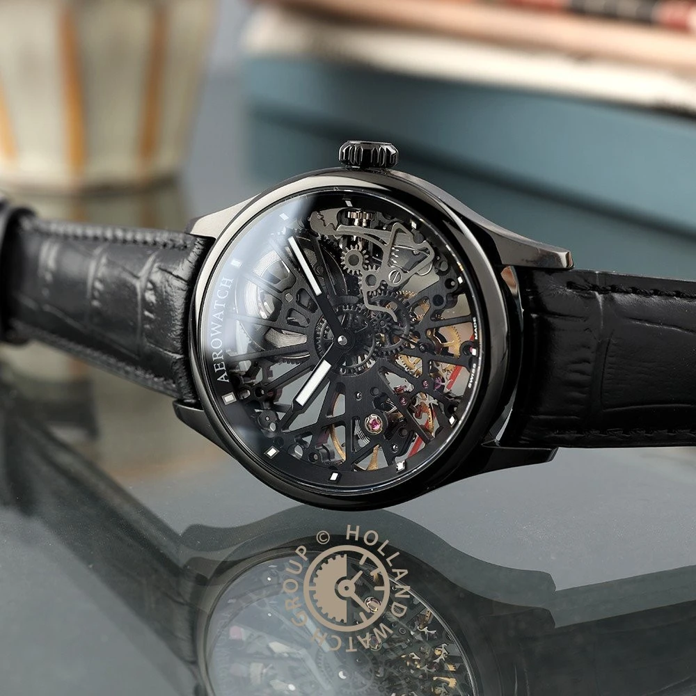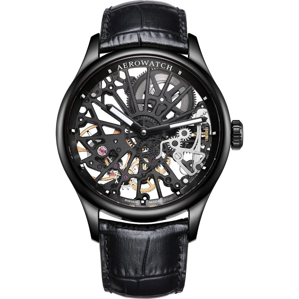 This Aerowatch watch has a case made of stainless steel with a diameter of 43 mm and is fitted with a leather band. Inside the case lies a ETA movement and the watch features a Sapphire crystal.