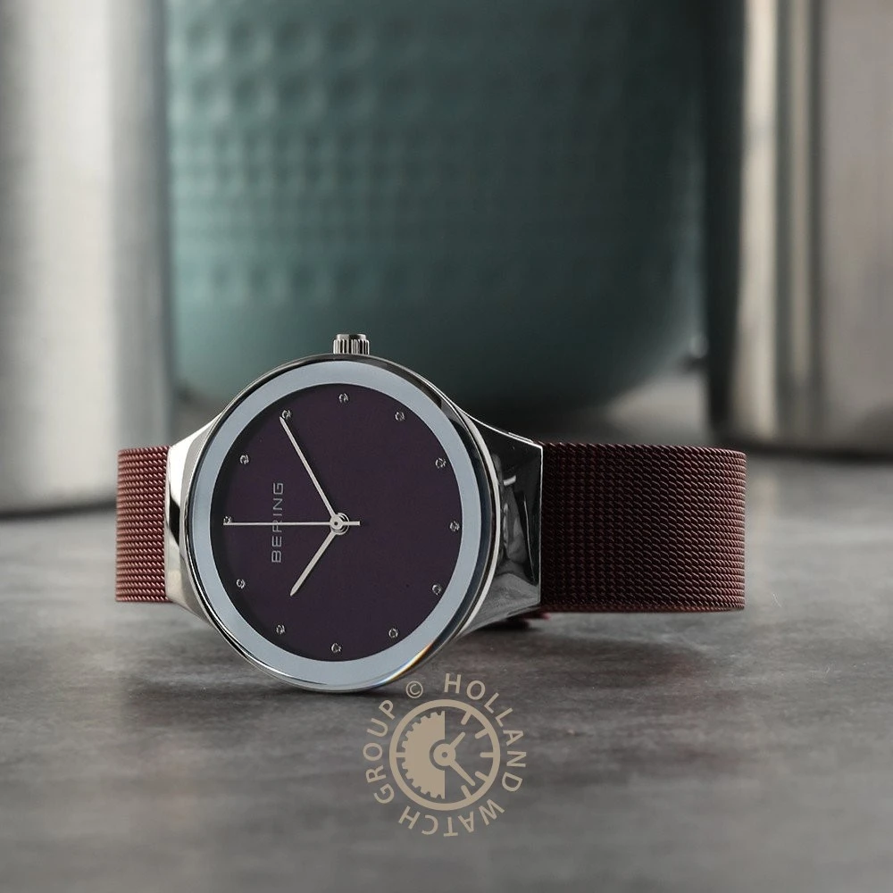 This Bering watch has a case made of stainless steel with a diameter of 34 mm and is fitted with a metal band. Inside the case lies a Miyota movement and the watch features a Sapphire crystal.