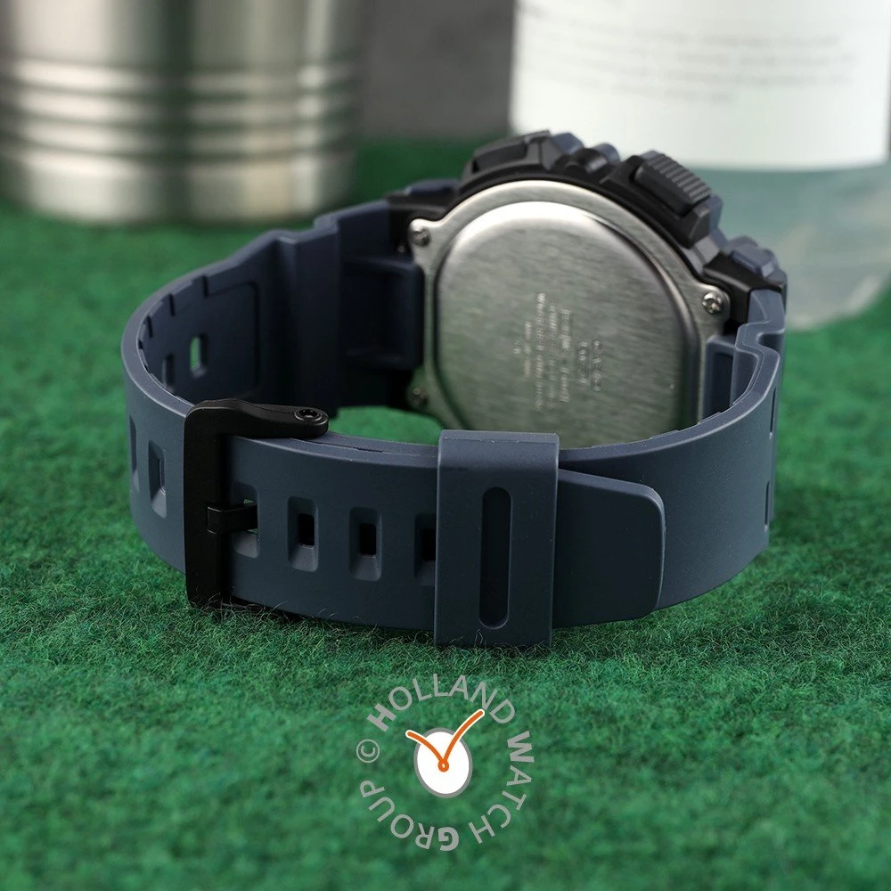 This Casio watch has a case made of plastic with a diameter of 50.1 mm and is fitted with a plastic / resin band. Inside the case lies a Casio movement and the watch features a Plexi crystal.