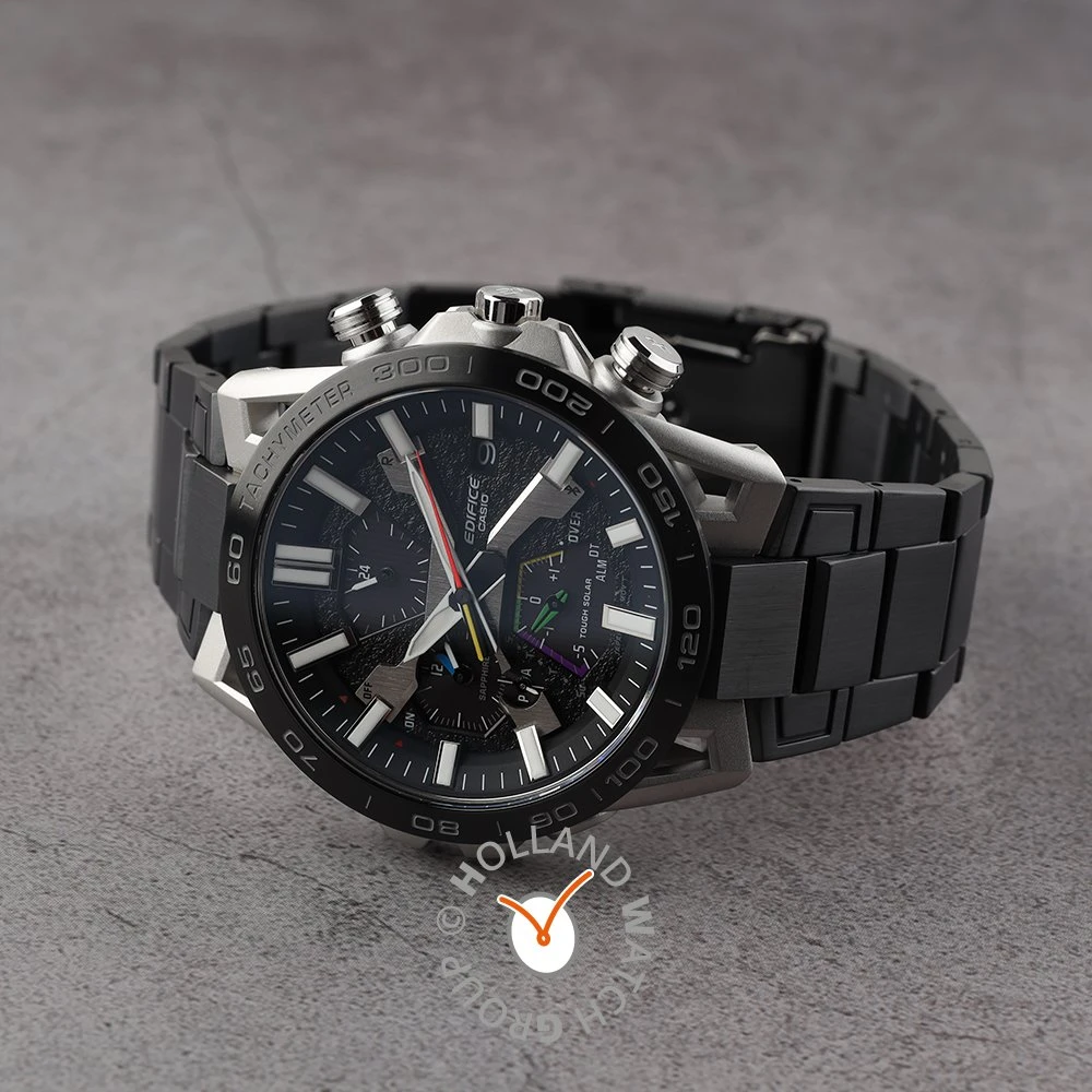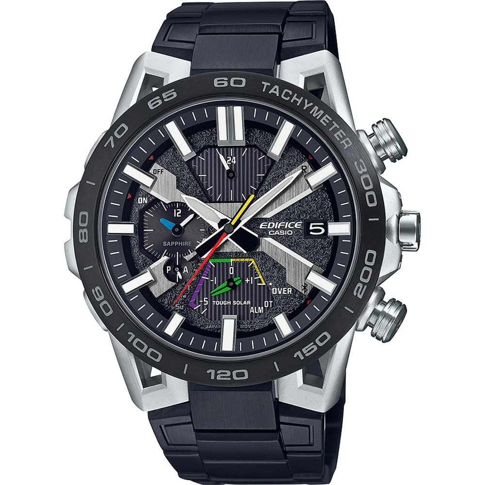 Integrating the advanced technologies and design of the EDIFICE line, with features including a new case shape inspired by the suspension arms on formula race cars, precision timekeeping, and the enhanced convenience of world time offered by Smartphone Link. A high-performance chronograph born of a “real motorsports” concept.