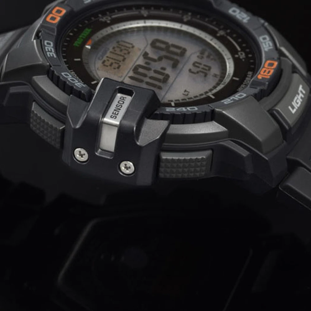 This Casio watch has a case made of plastic with a diameter of 52.4 mm and is fitted with a plastic / resin band. Inside the case lies a Casio movement and the watch features a Mineral crystal.