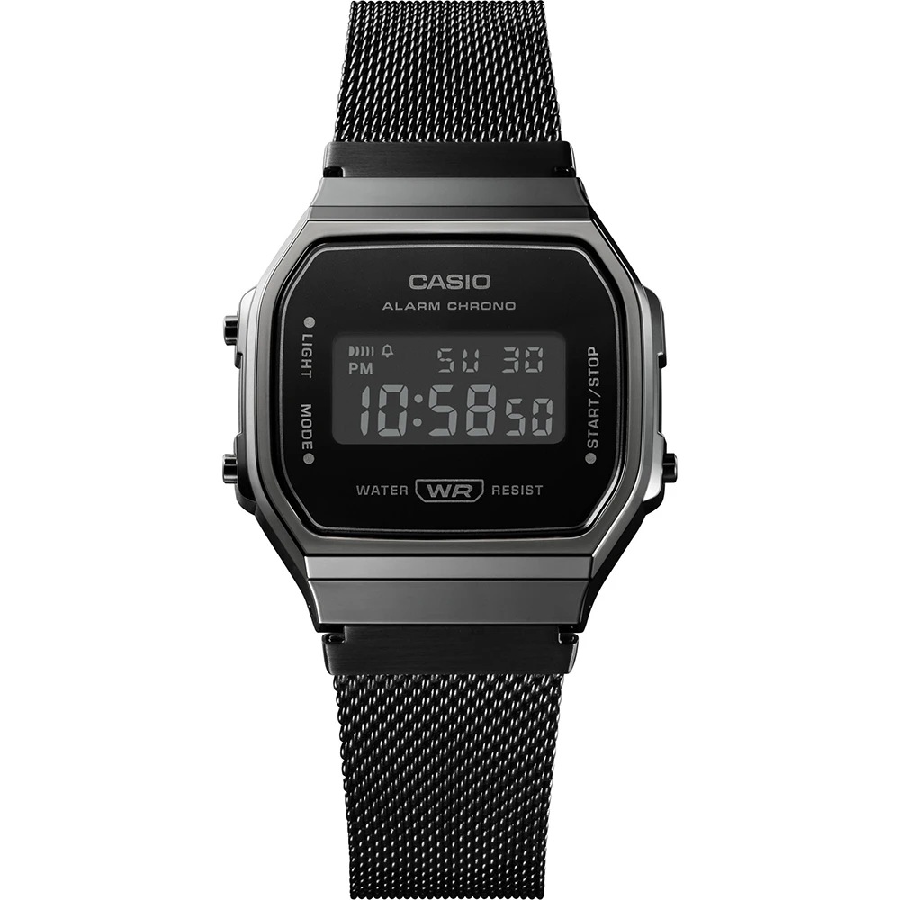 This Casio watch has a case made of plastic with a diameter of 36.3 mm and is fitted with a metal band. Inside the case lies a Casio movement and the watch features a Plexi crystal.