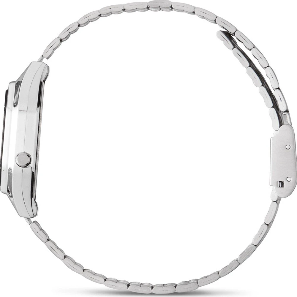 This Casio watch has a case made of plastic with a diameter of 28.6 mm and is fitted with a metal band. Inside the case lies a Casio movement and the watch features a Mineral crystal.