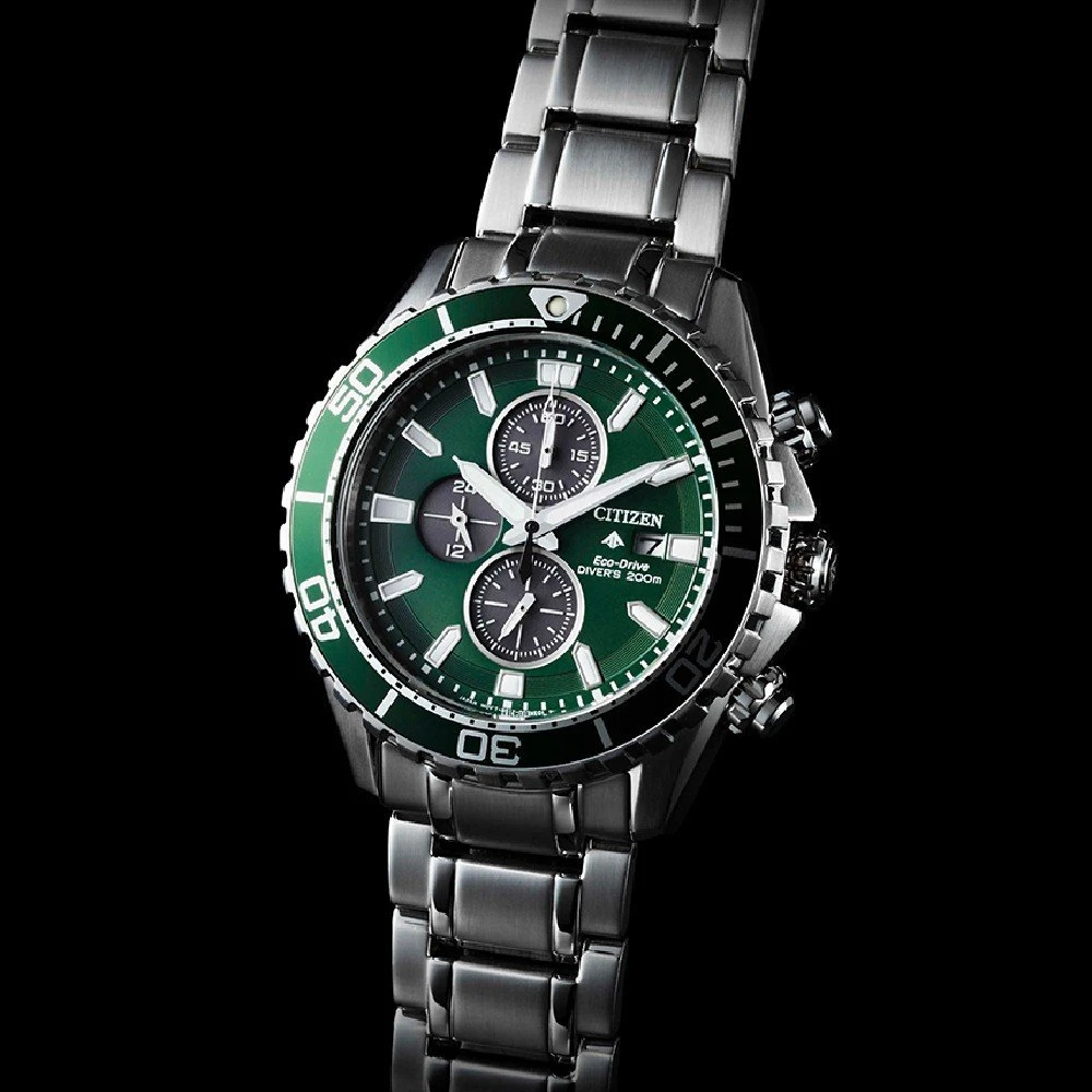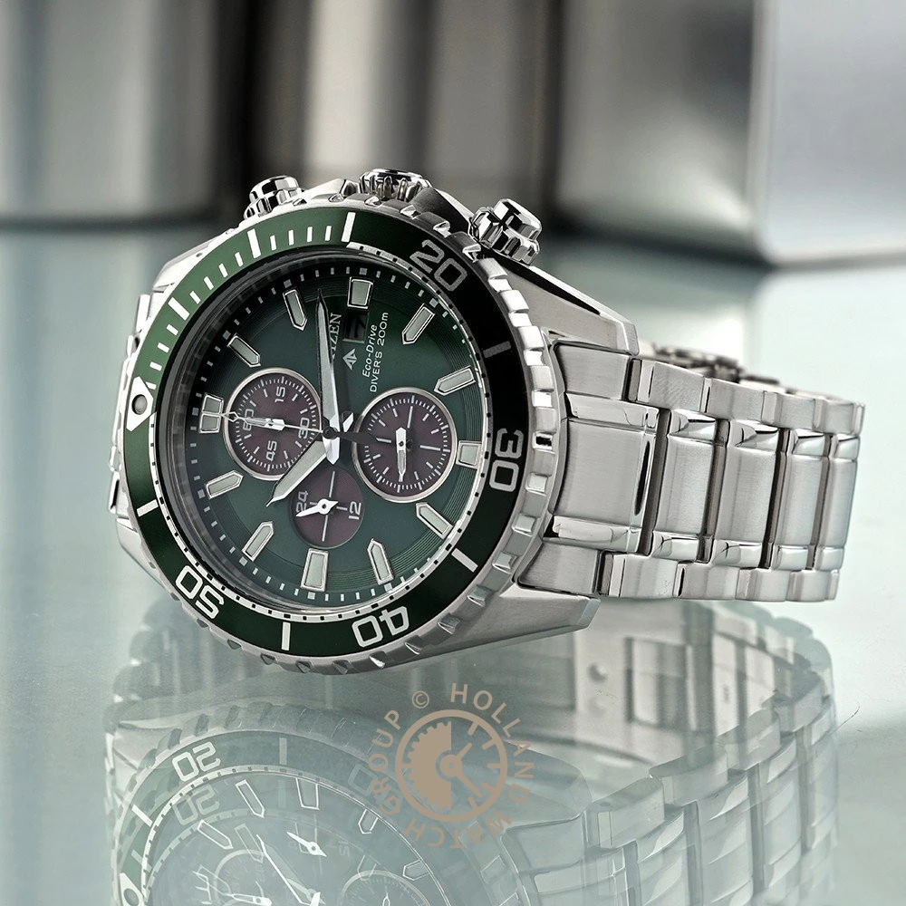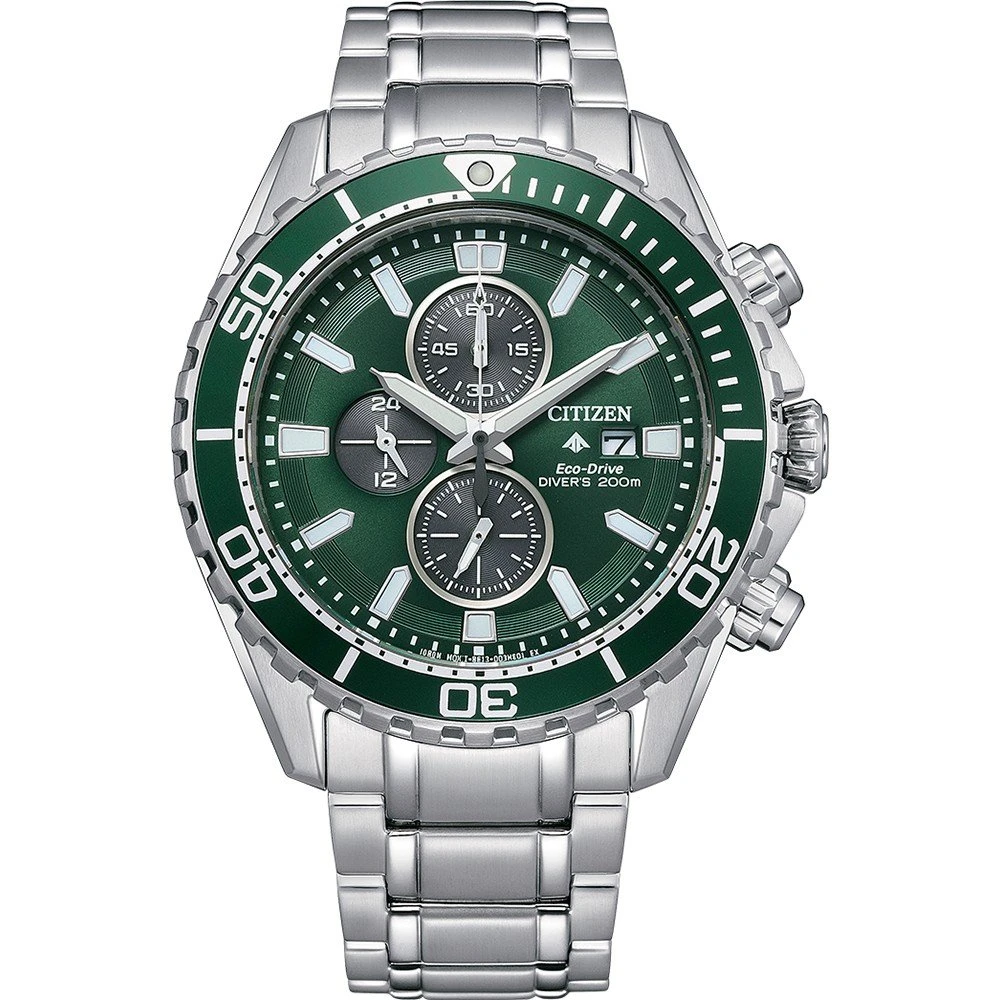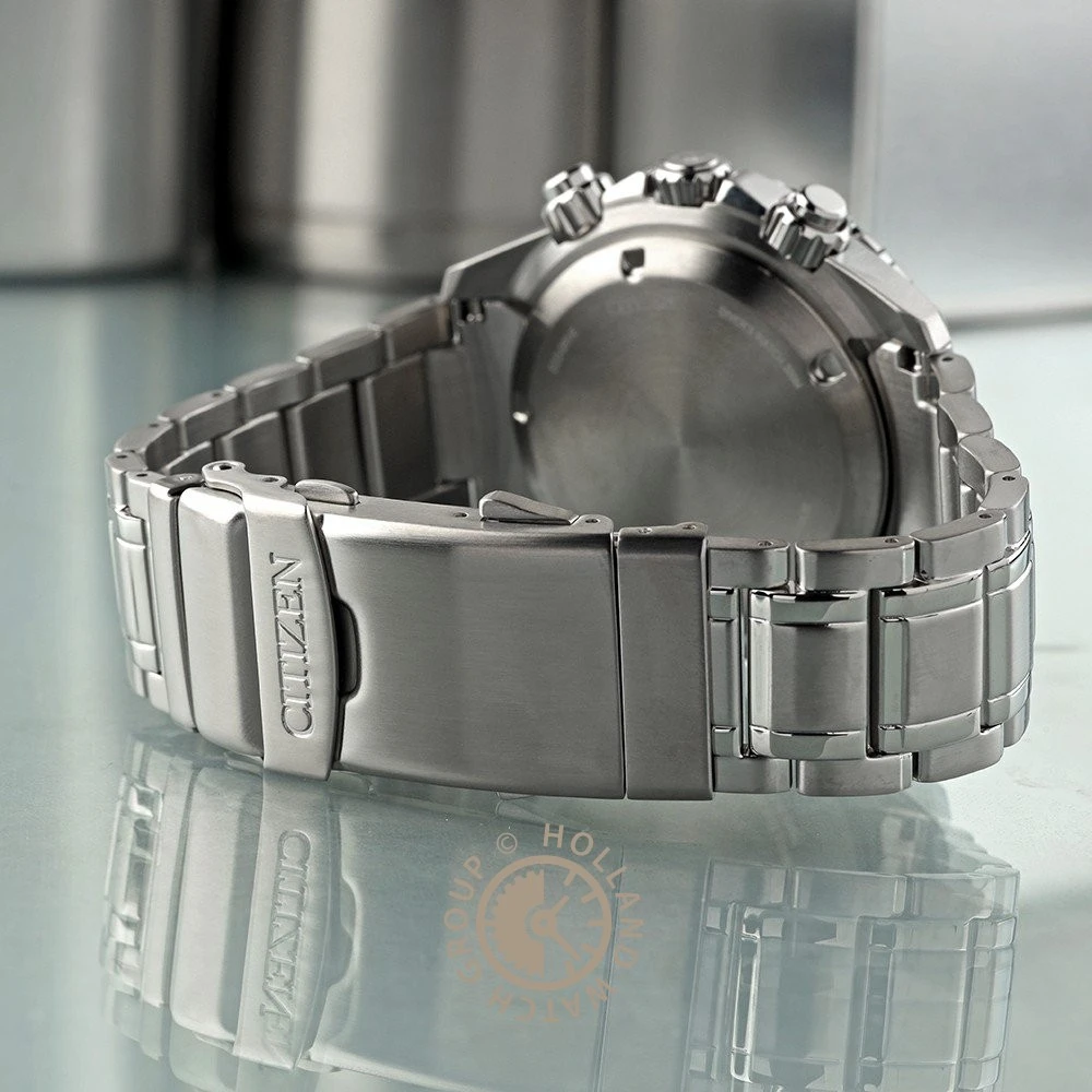 This Citizen watch has a case made of stainless steel with a diameter of 45 mm and is fitted with a metal band. Inside the case lies a Citizen movement and the watch features a Sapphire crystal.