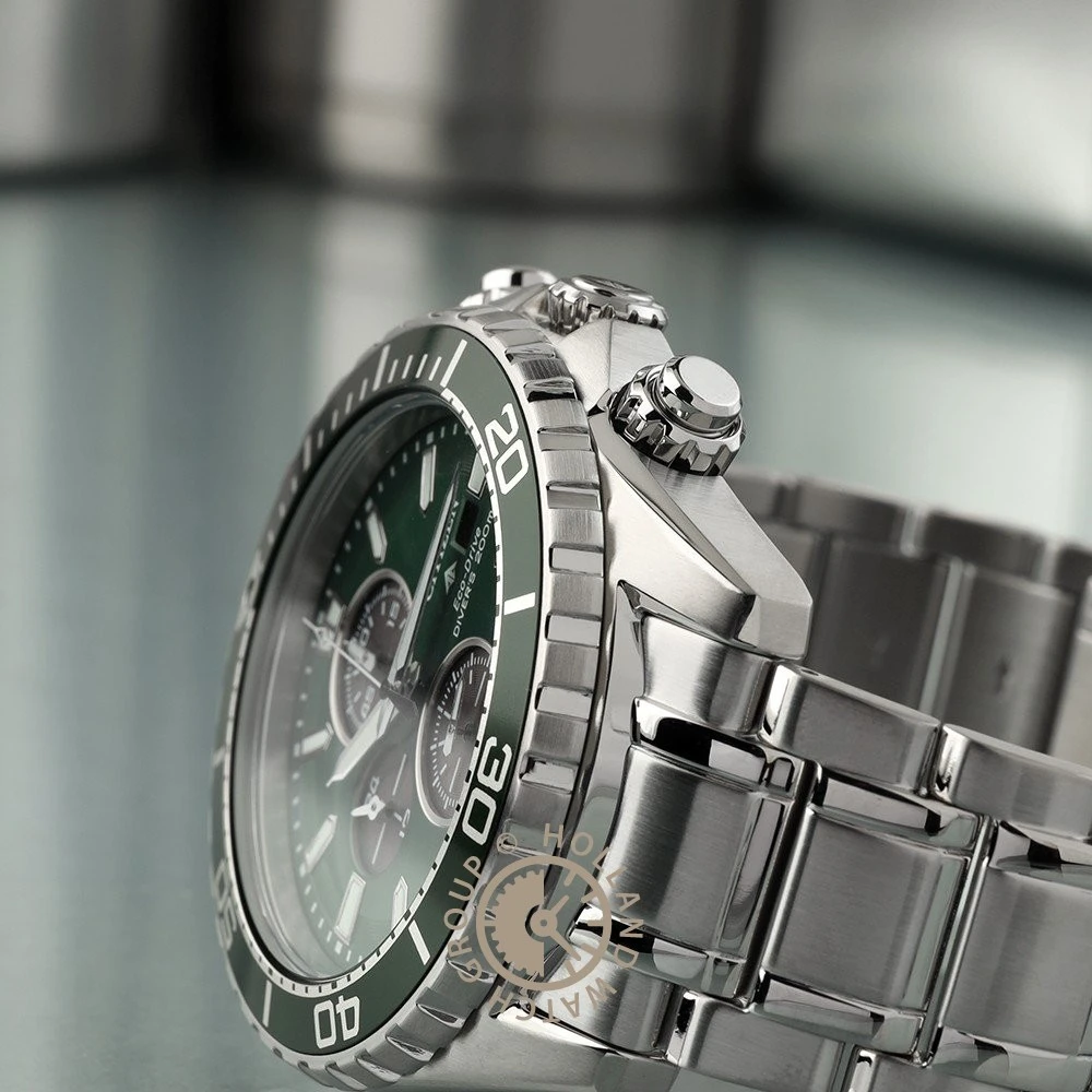 The watch is 20 ATM. This means the watch is suitable for diving. The watch comes with 2 Year Warranty.
