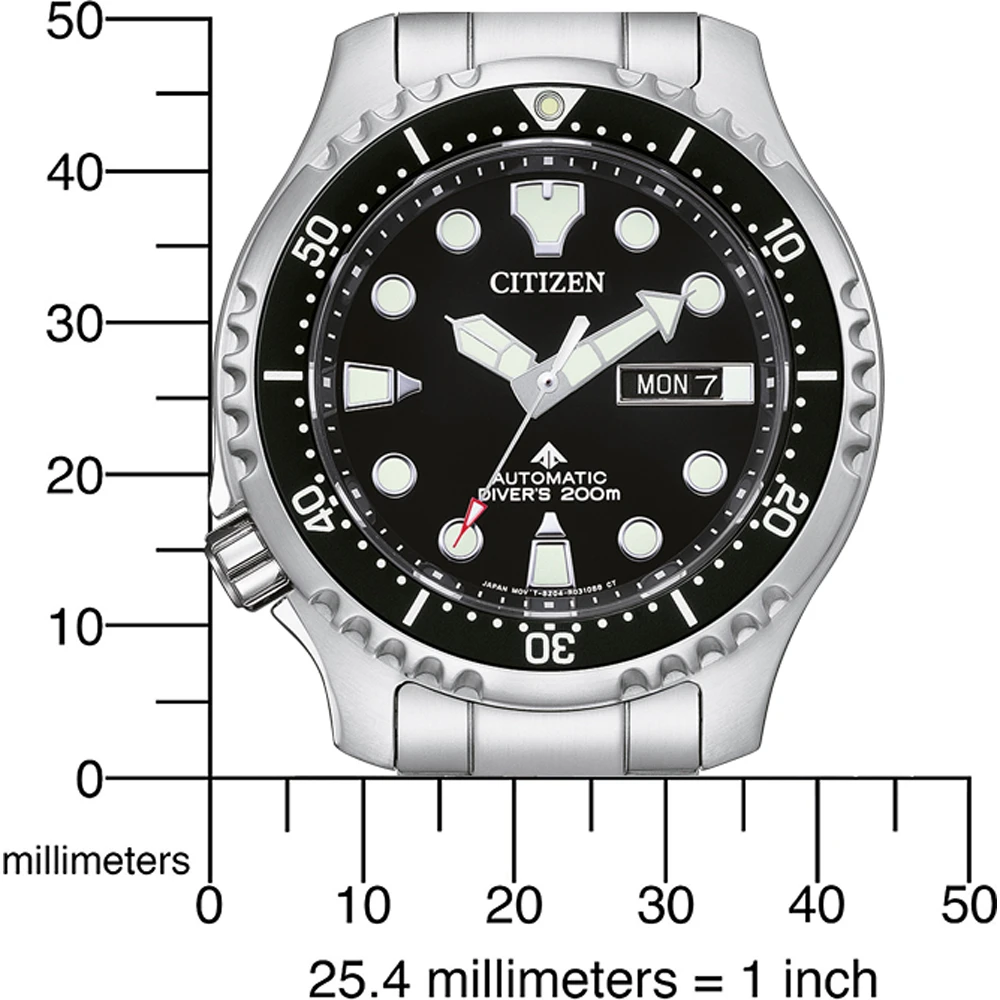 This Citizen watch has a stainless steel case 44 mm in diameter and is fitted with a metal strap. Inside the case lies a Miyota movement and the watch features a Sapphire crystal.