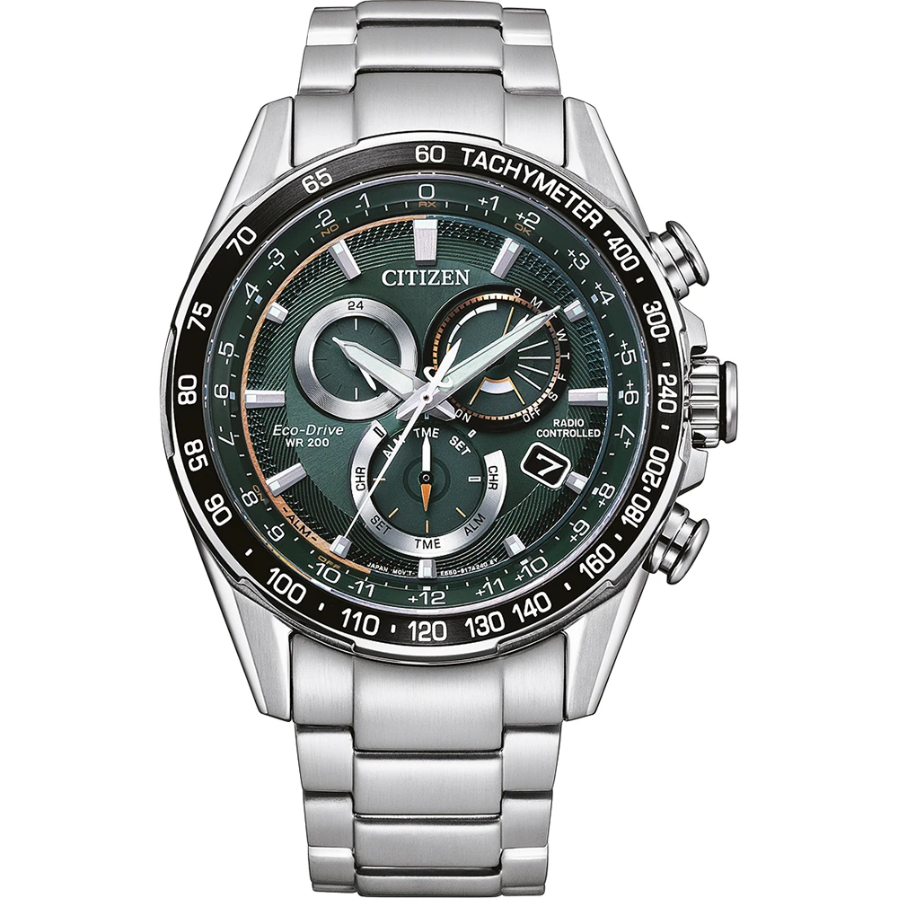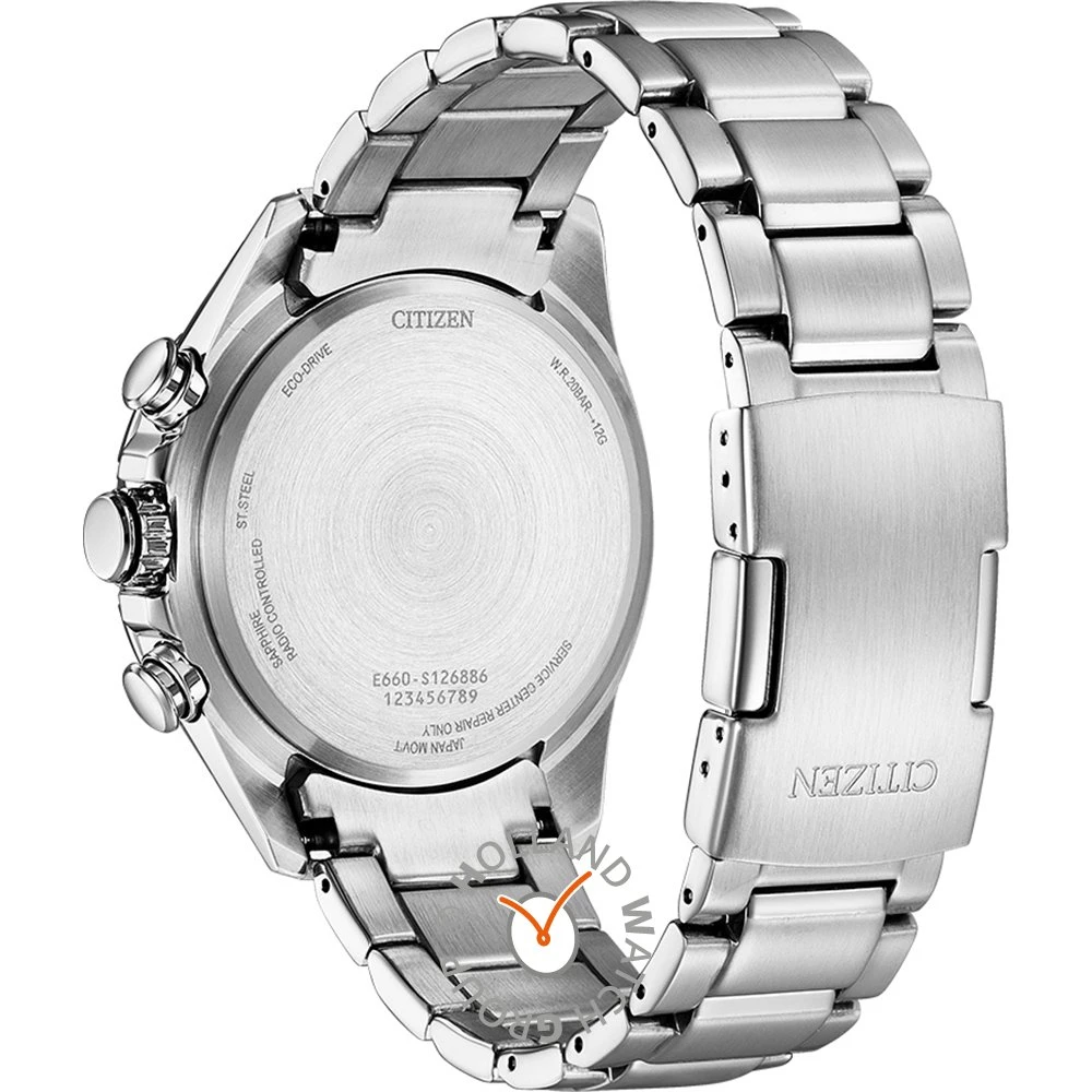This Citizen watch has a case made of stainless steel with a diameter of 43 mm and is fitted with a metal band. Inside the case lies a Citizen movement and the watch features a Sapphire crystal.