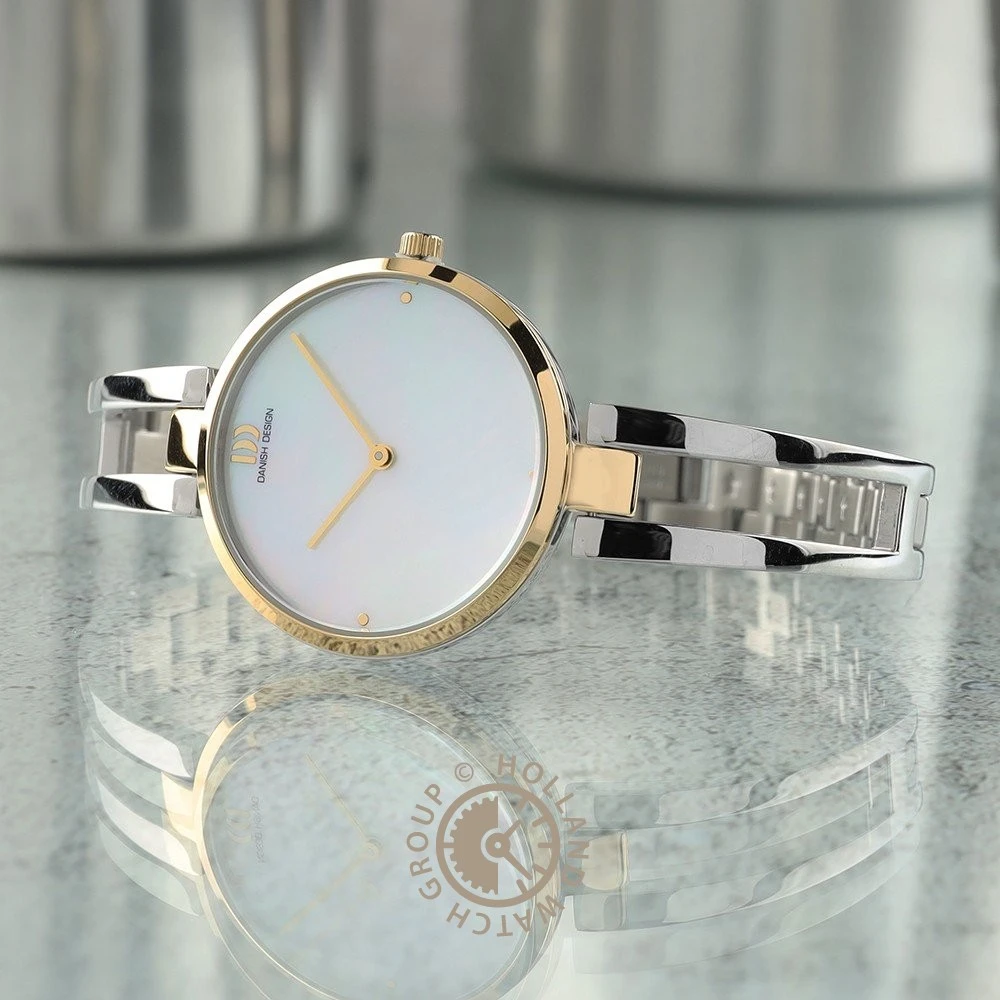 This Danish Design watch has a case made of stainless steel with a diameter of 33 mm and is fitted with a metal band. Inside the case lies a Miyota movement and the watch features a Mineral crystal.