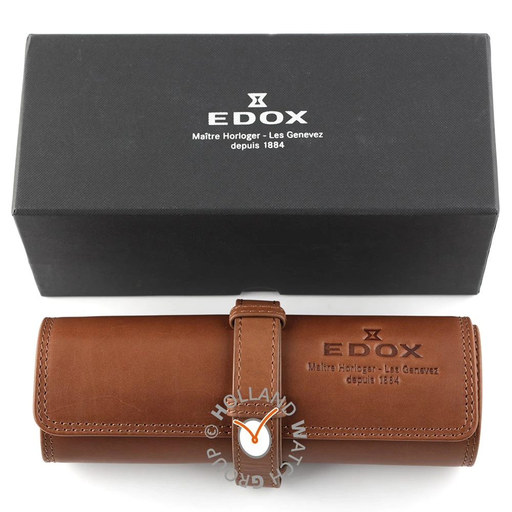This Edox watch has a case made of stainless steel with a diameter of 42 mm and is fitted with a leather band. Inside the case lies a Sellita movement and the watch features a Sapphire crystal.