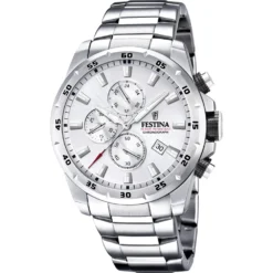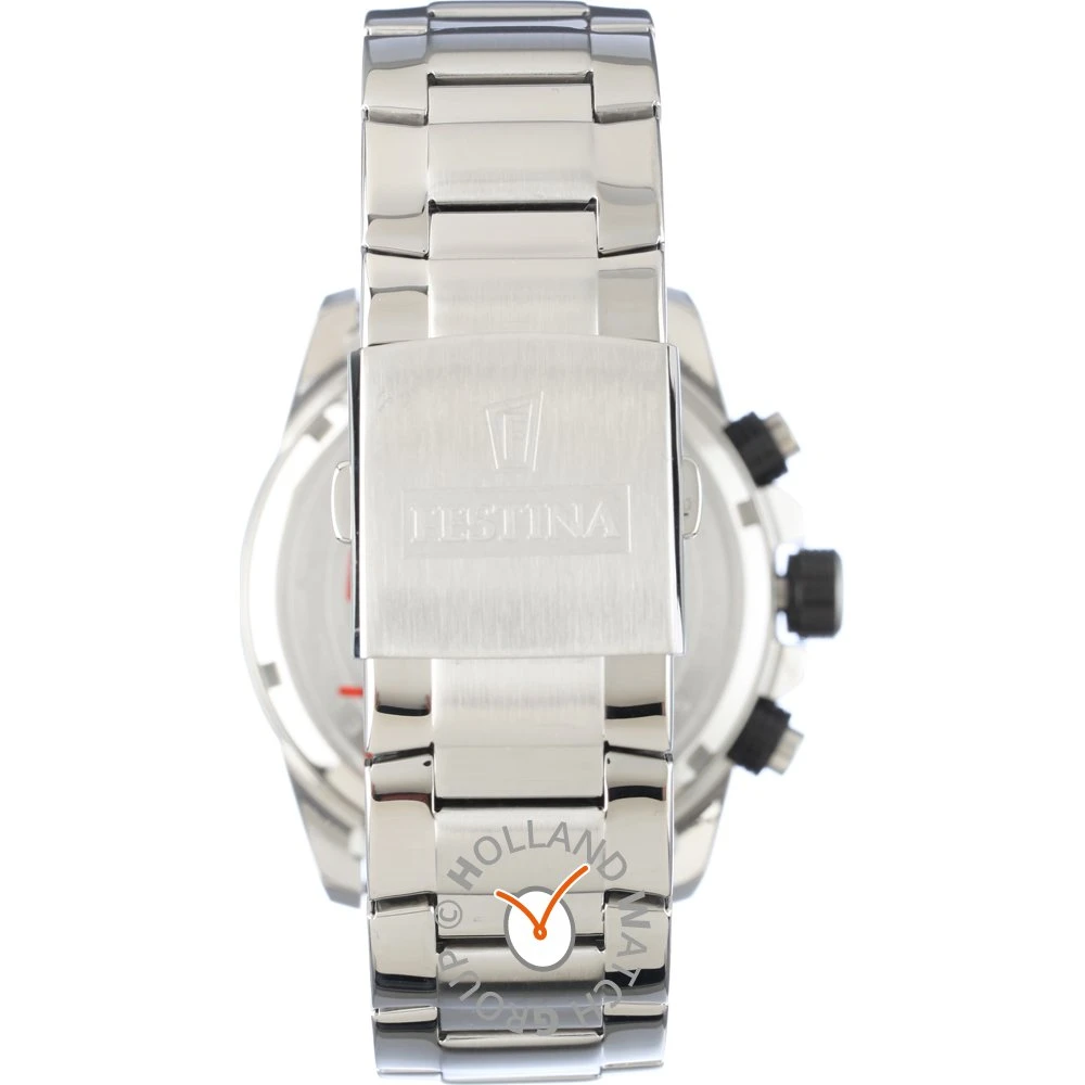 This Festina watch has a case made of stainless steel with a diameter of 45 mm and is fitted with a metal band. Inside the case lies a Miyota movement and the watch features a Mineral crystal.