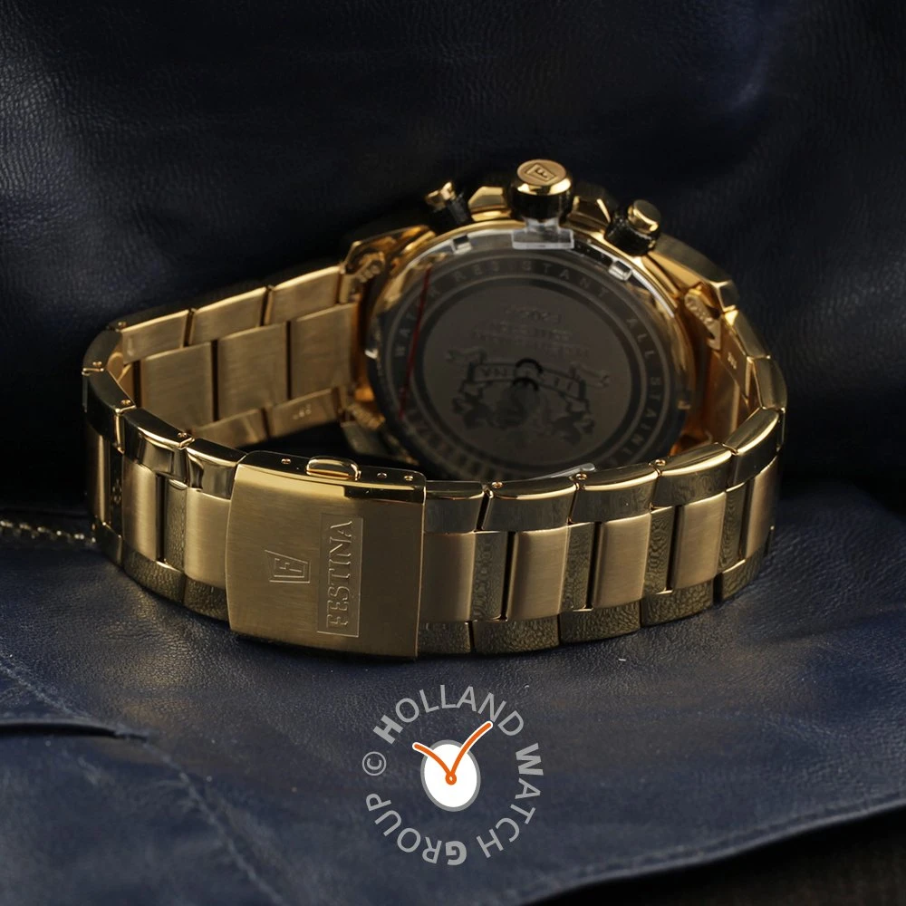 This Festina watch has a case made of stainless steel with a diameter of 45 mm and is fitted with a metal band. Inside the case lies a Miyota movement and the watch features a Mineral crystal.