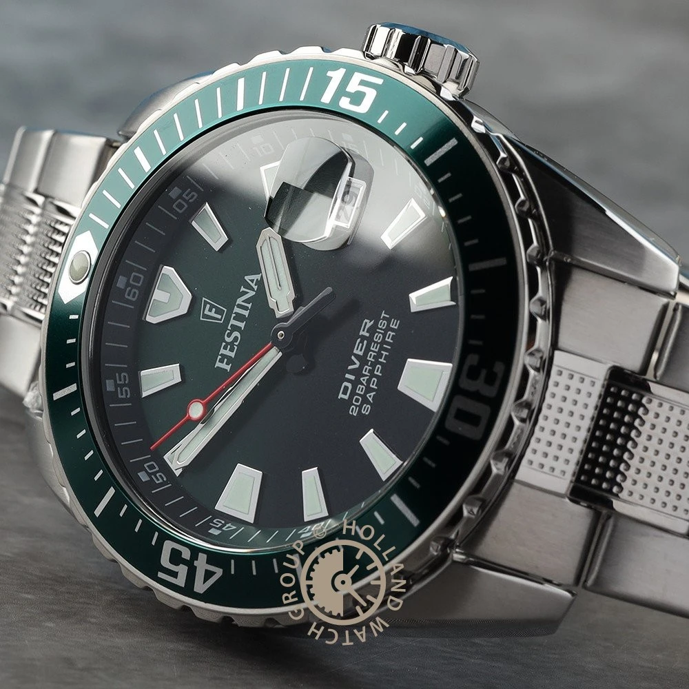 This Festina watch has a stainless steel case 44 mm in diameter and is fitted with a metal strap. Inside the case lies a Miyota movement and the watch features a Sapphire crystal.