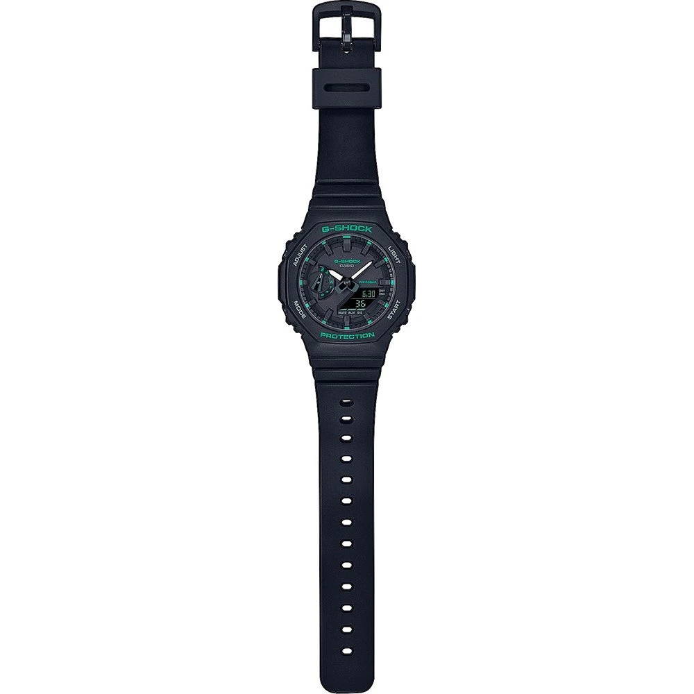 This G-Shock watch has a Carbon reinforced resin case 42.9 mm in diameter and is fitted with a plastic / resin strap. Inside the case lies a Casio movement and the watch features a Mineral crystal.