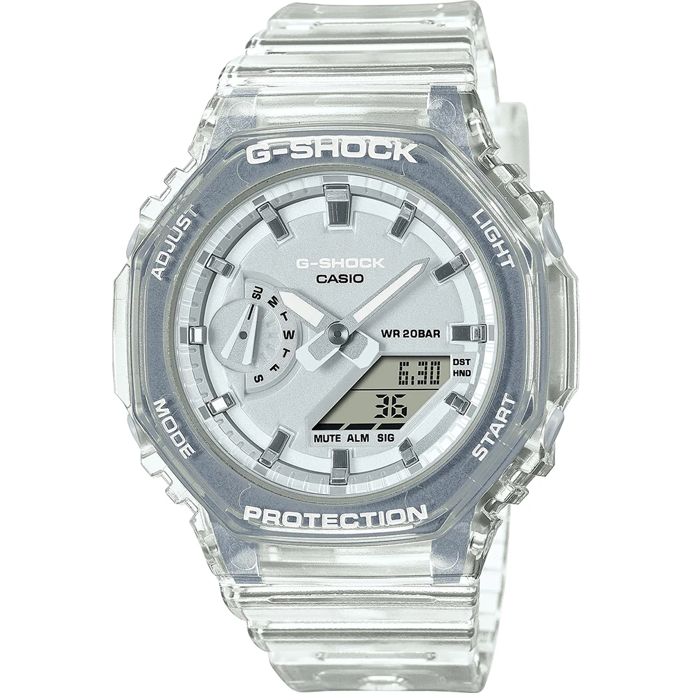This G-Shock watch has a case made of Fibre-reinforced Resin with a diameter of 42.9 mm and is fitted with a plastic / resin band. Inside the case lies a Casio movement and the watch features a Mineral crystal.