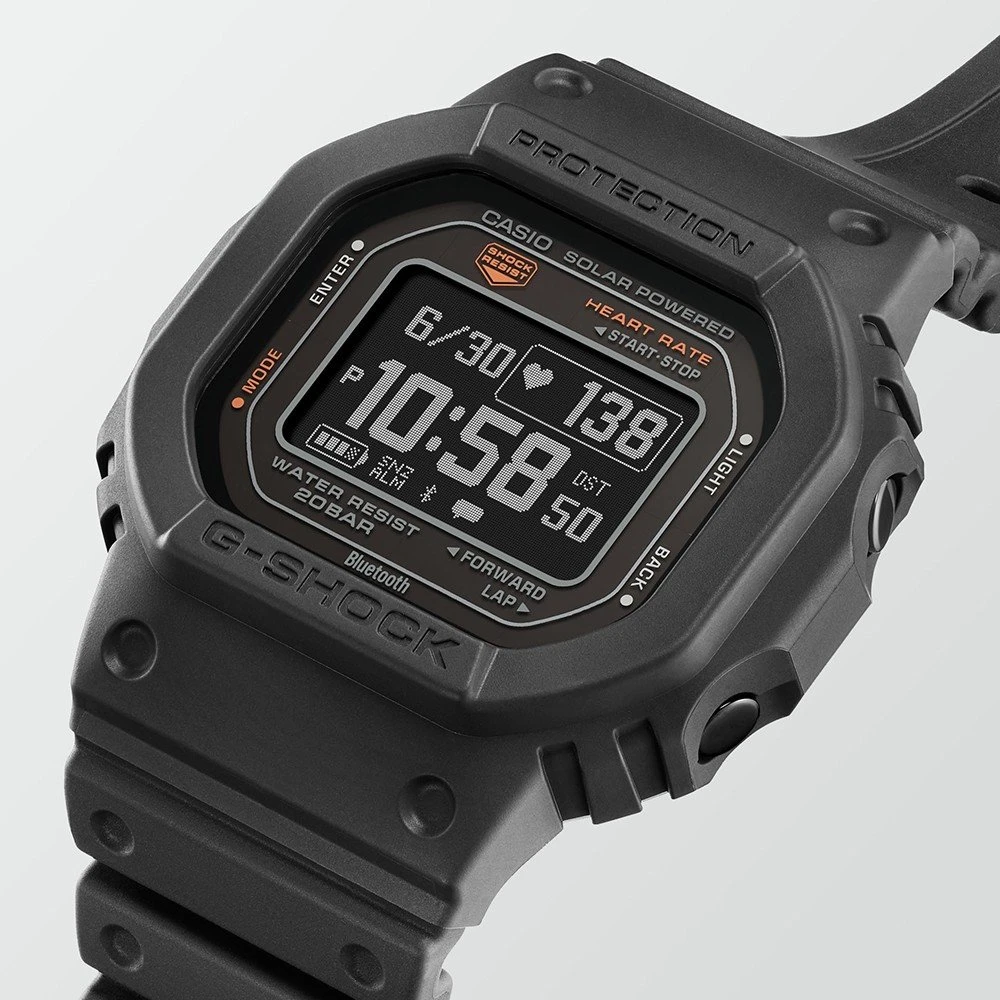 This G-Shock watch has a Bio-sourced plastic case 44 mm in diameter and is fitted with a plastic / resin strap. Inside the case lies a Casio movement and the watch features a Mineral crystal.