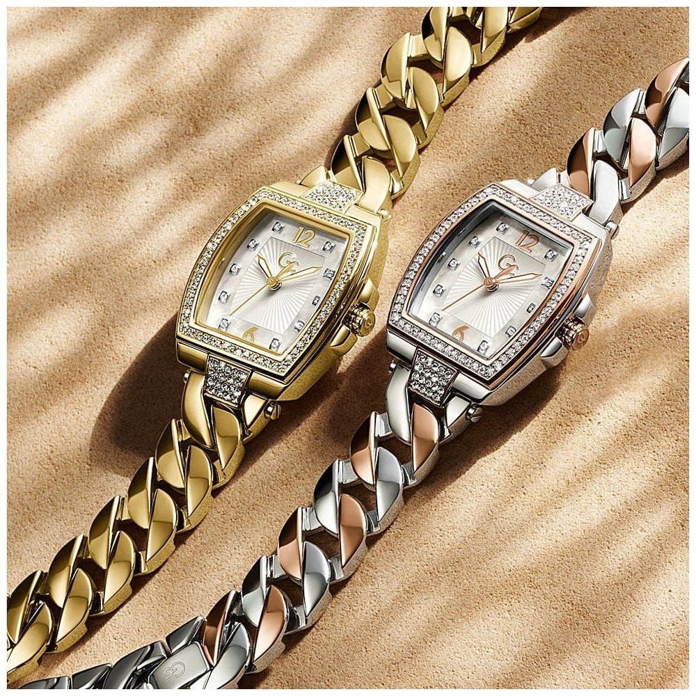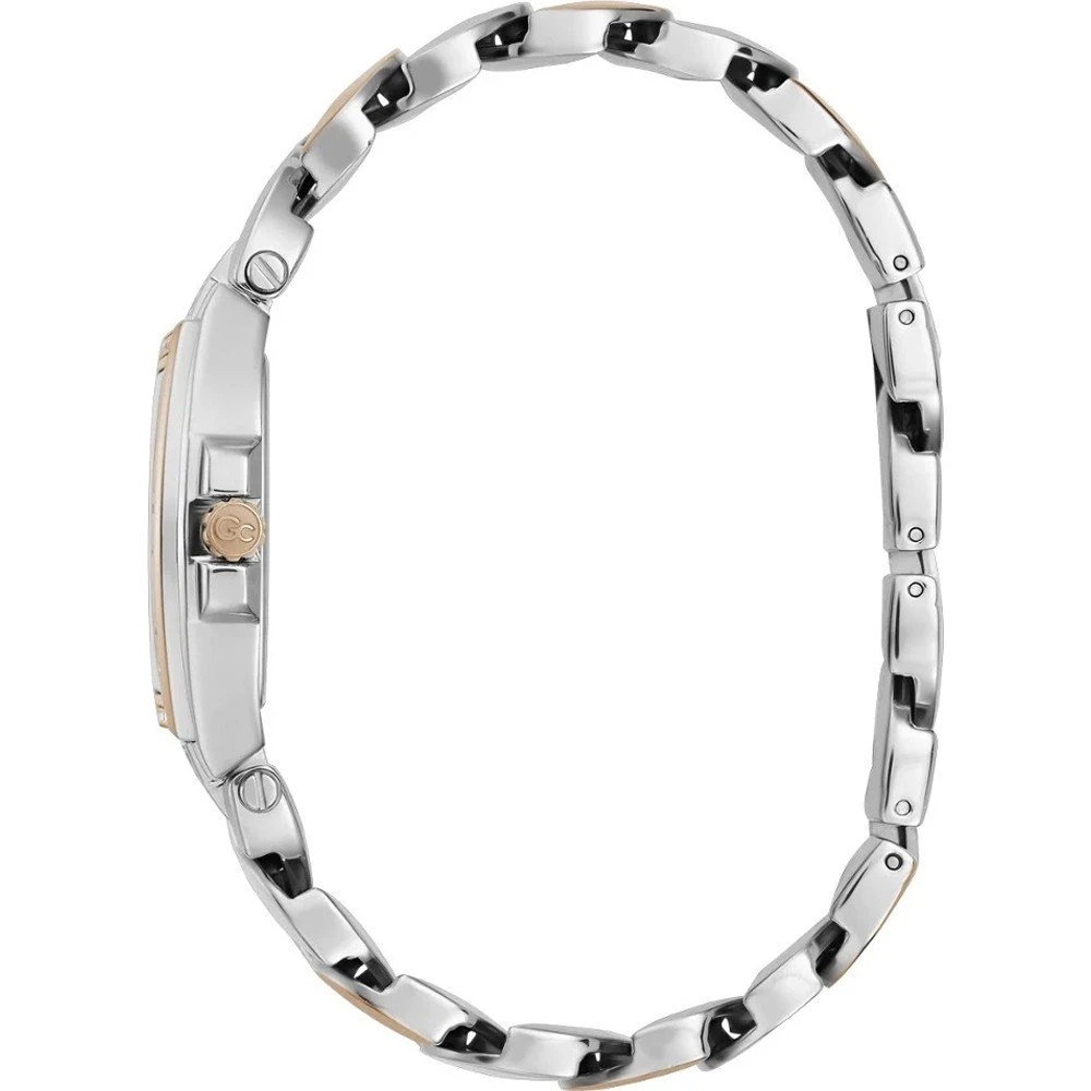 This GC watch has a case made of stainless steel with a diameter of 35 mm and is fitted with a metal band.