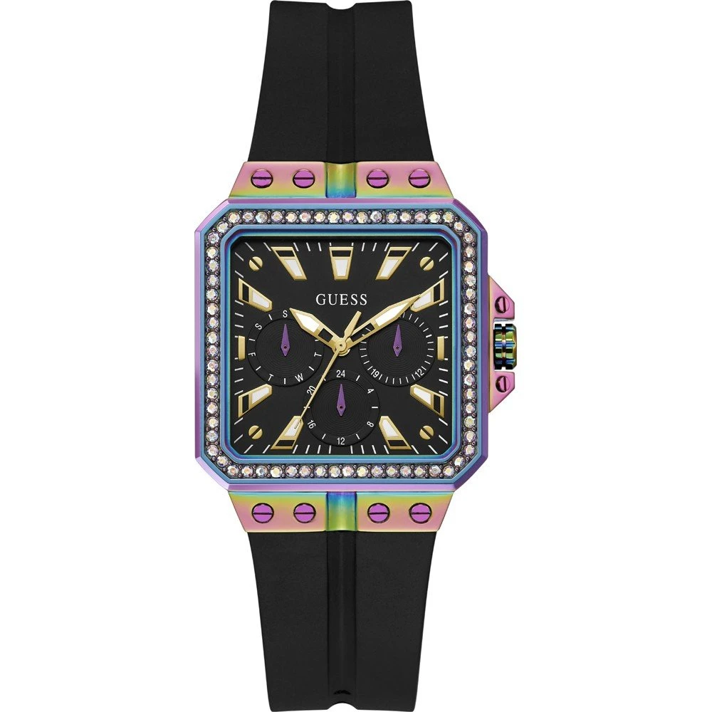 This Guess watch has a case made of stainless steel with a diameter of 34 mm and is fitted with a rubber band. Inside the case lies a Seiko Instruments Inc. movement and the watch features a Mineral crystal.