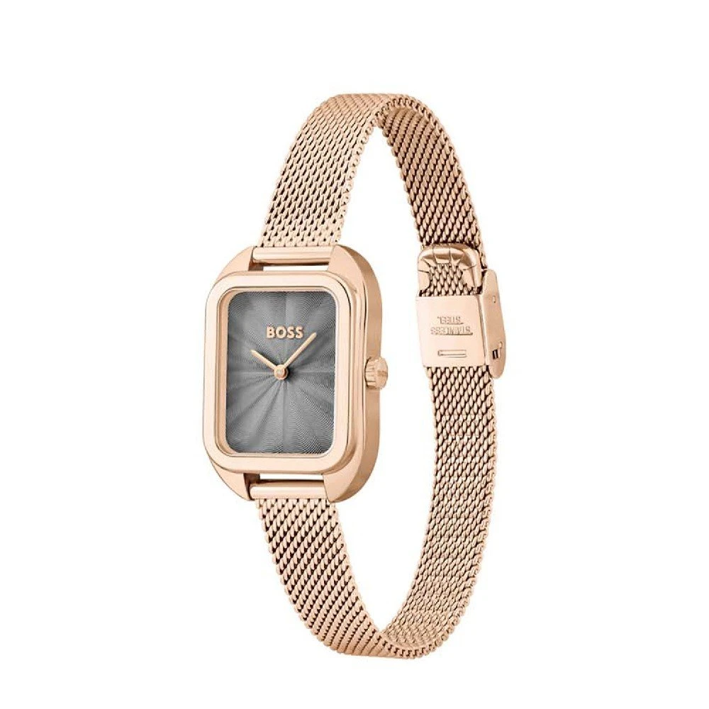 This Hugo Boss watch has a case made of stainless steel with a diameter of 25 mm and is fitted with a metal band. Inside the case lies a Seiko Instruments Inc. movement and the watch features a Mineral crystal.
