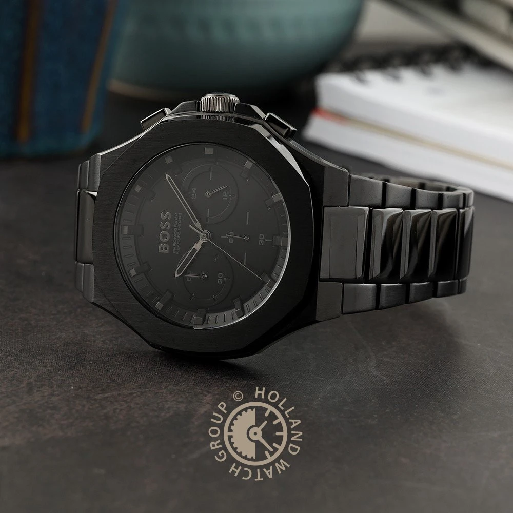 This Hugo Boss watch has a case made of stainless steel with a diameter of 45 mm and is fitted with a metal band. Inside the case lies a Seiko Instruments Inc. movement and the watch features a Mineral crystal.