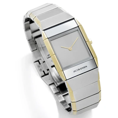 This Jacob Jensen watch has a case made of stainless steel with a diameter of 25 mm and is fitted with a metal band. Inside the case lies a ISA movement and the watch features a Sapphire crystal.