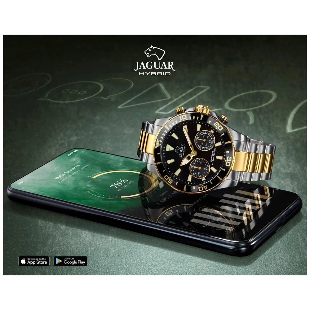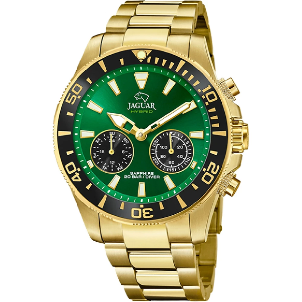 This Jaguar watch has a stainless steel case 45 mm in diameter and is fitted with a metal strap. Inside the case lies a Kronaby movement and the watch features a Sapphire crystal.