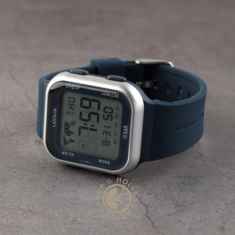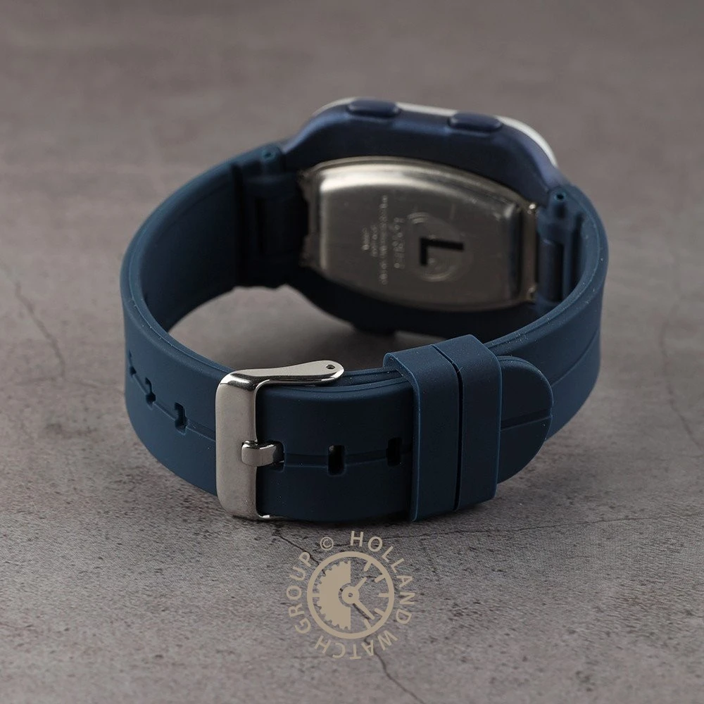 This Lorus watch has a case made of Resin with a diameter of 38 mm and is fitted with a rubber band. Inside the case lies a Seiko Instruments Inc. movement and the watch features a Plexi crystal.