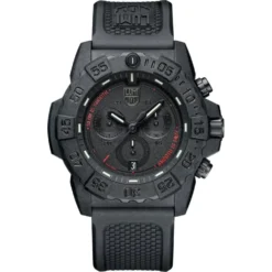 This Luminox watch has a carbon case 45 mm in diameter and is fitted with a rubber strap. Inside the case lies a Ronda movement and the watch features a Hardened mineral crystal.