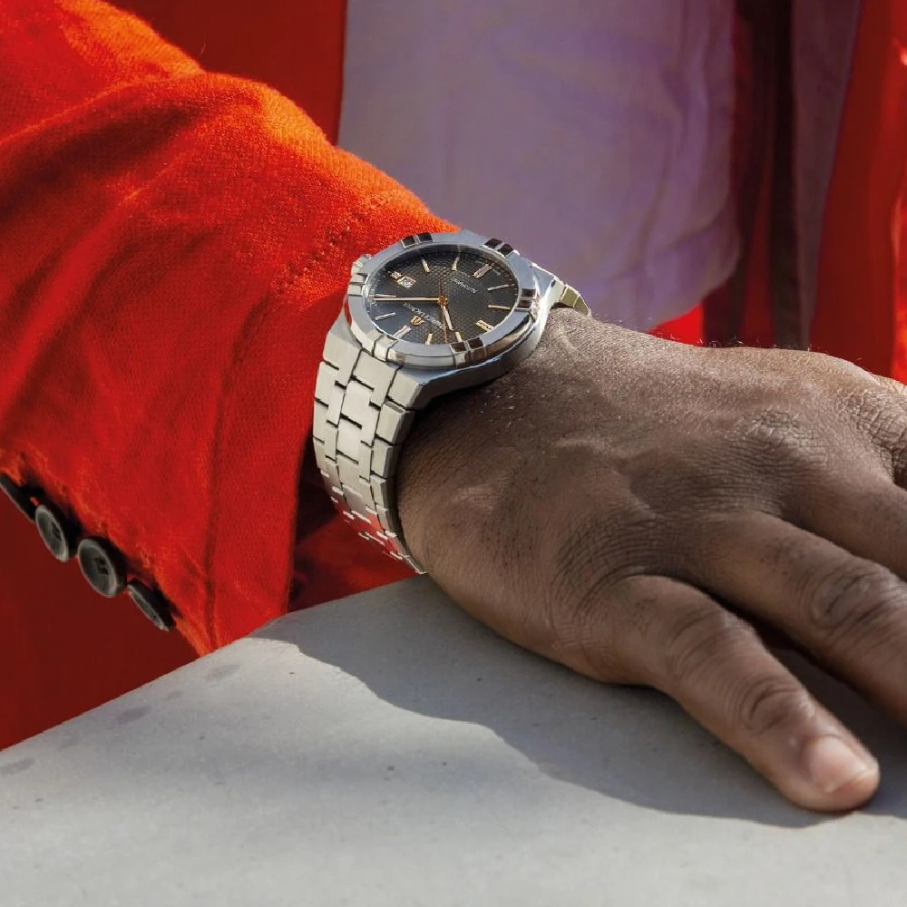 The design of this Aikon watch is inspired by the Maurice Lacroix Calypso from the 1990s.The relief on the bezel gives the watch a luxurious look. All the Aikon watches have an easy-to-change watch band that does not require any tools in order to remove them, which makes the watch band easily interchangeable with other watch bands from this series. The watch is therefore suitable for any occasion. In the mood for sports? Simply attach a silicone watch band. Having a fancy dinner party in the evening? Simply attach a stainless steel or leather watch band.