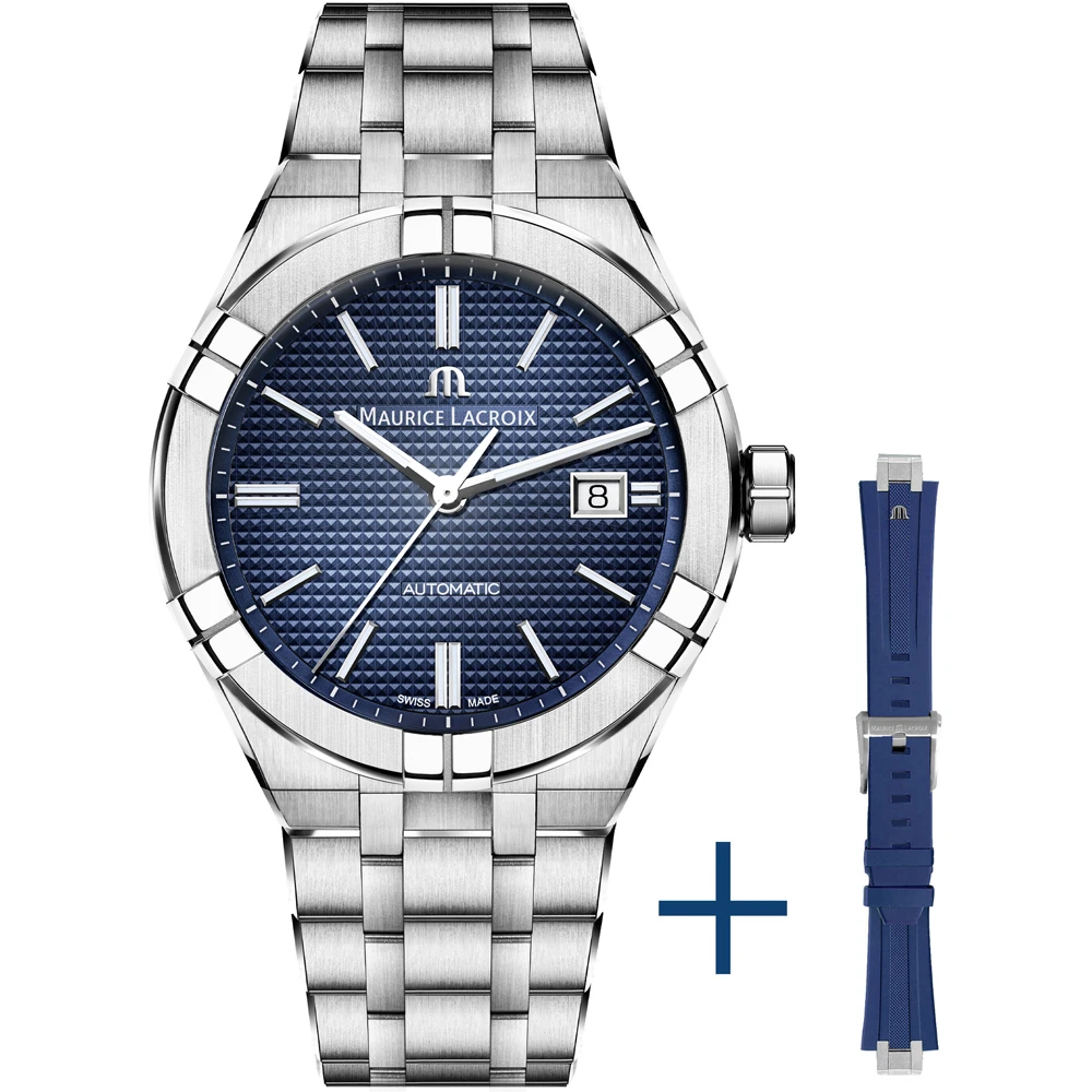 This Maurice Lacroix watch has a case made of stainless steel with a diameter of 42 mm and is fitted with a metal band. Inside the case lies a Sellita movement and the watch features a Sapphire crystal.