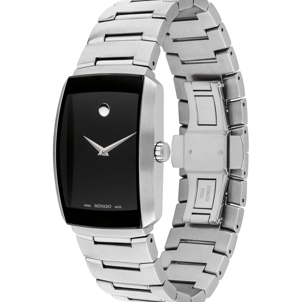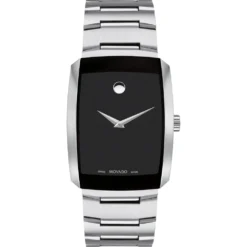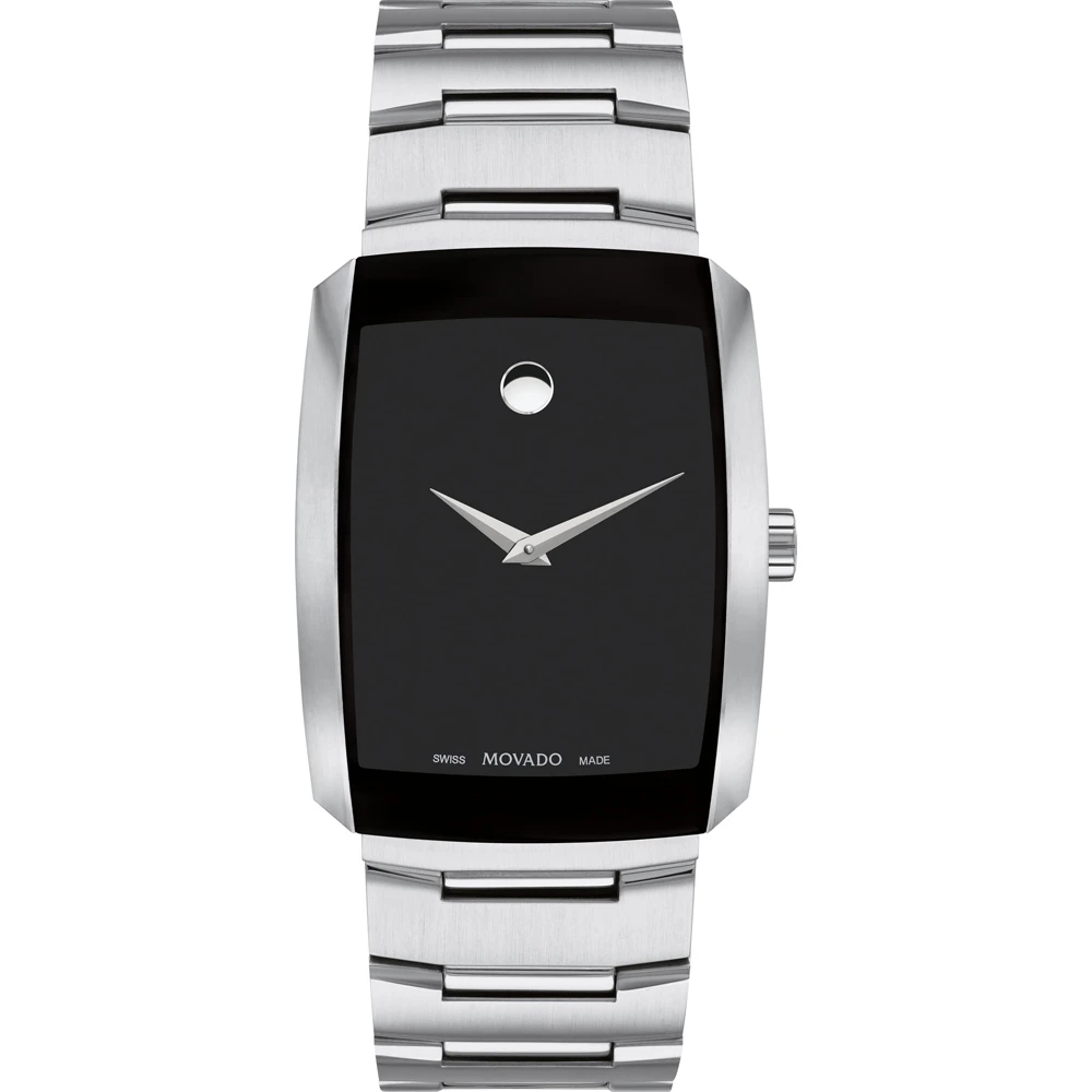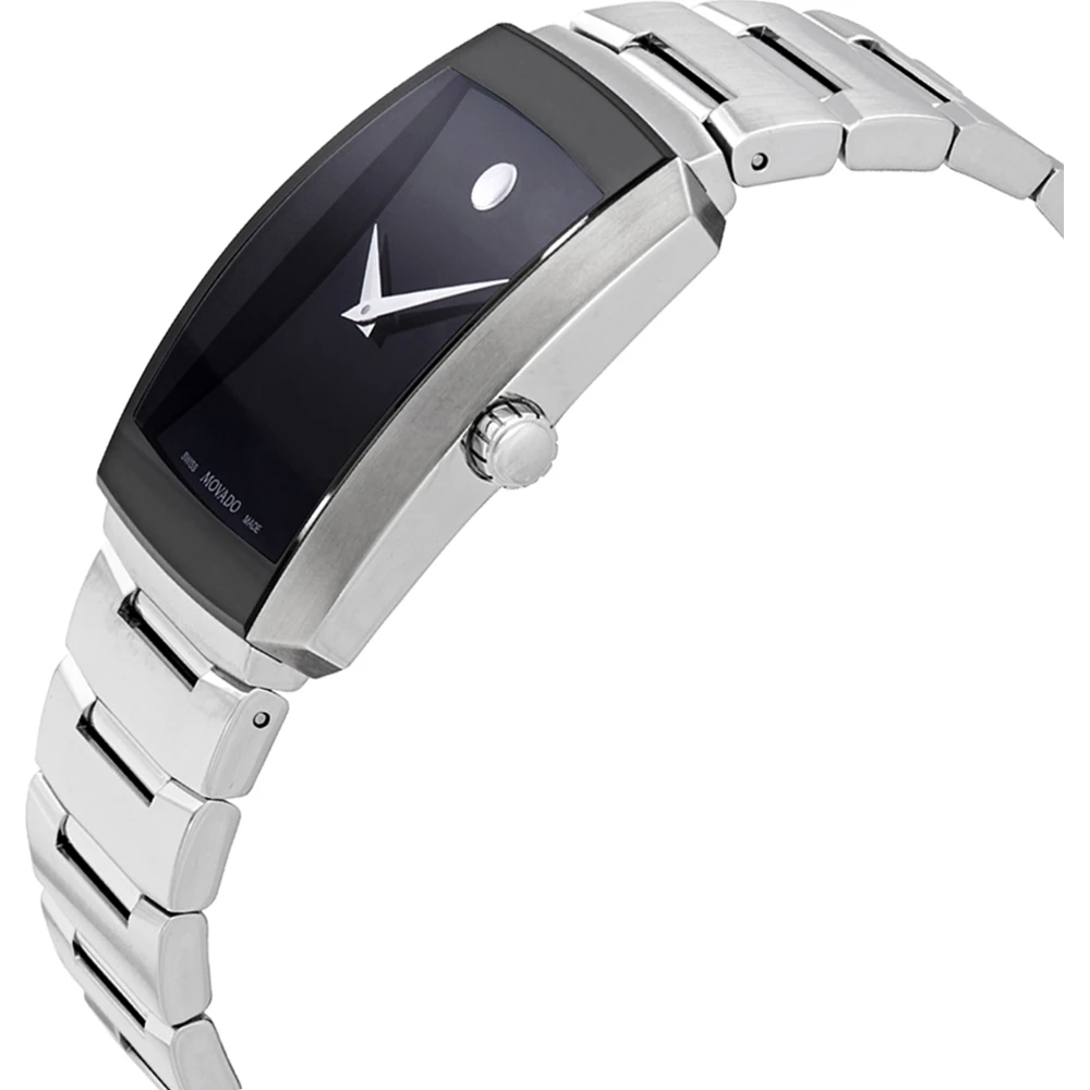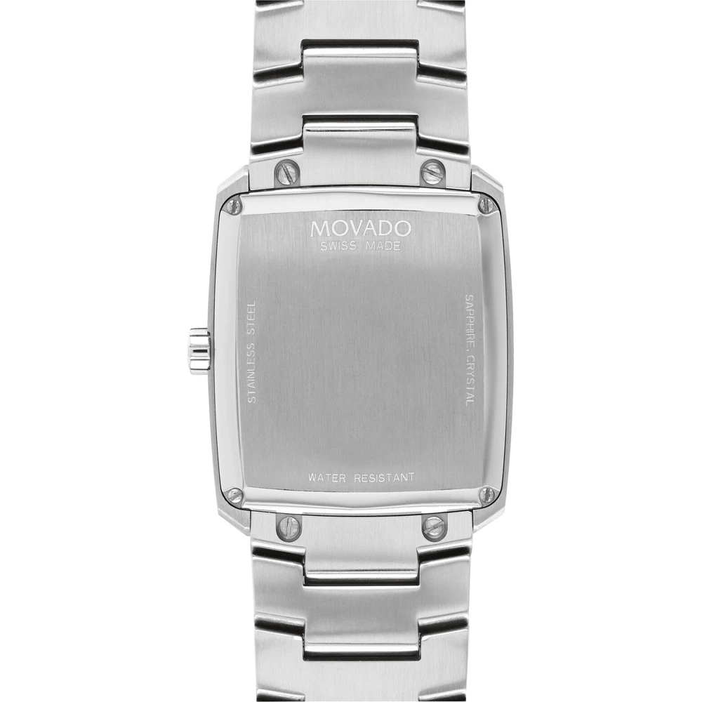 This Movado watch has a case made of stainless steel with a diameter of 40 mm and is fitted with a metal band. Inside the case lies a Ronda movement and the watch features a Sapphire crystal.