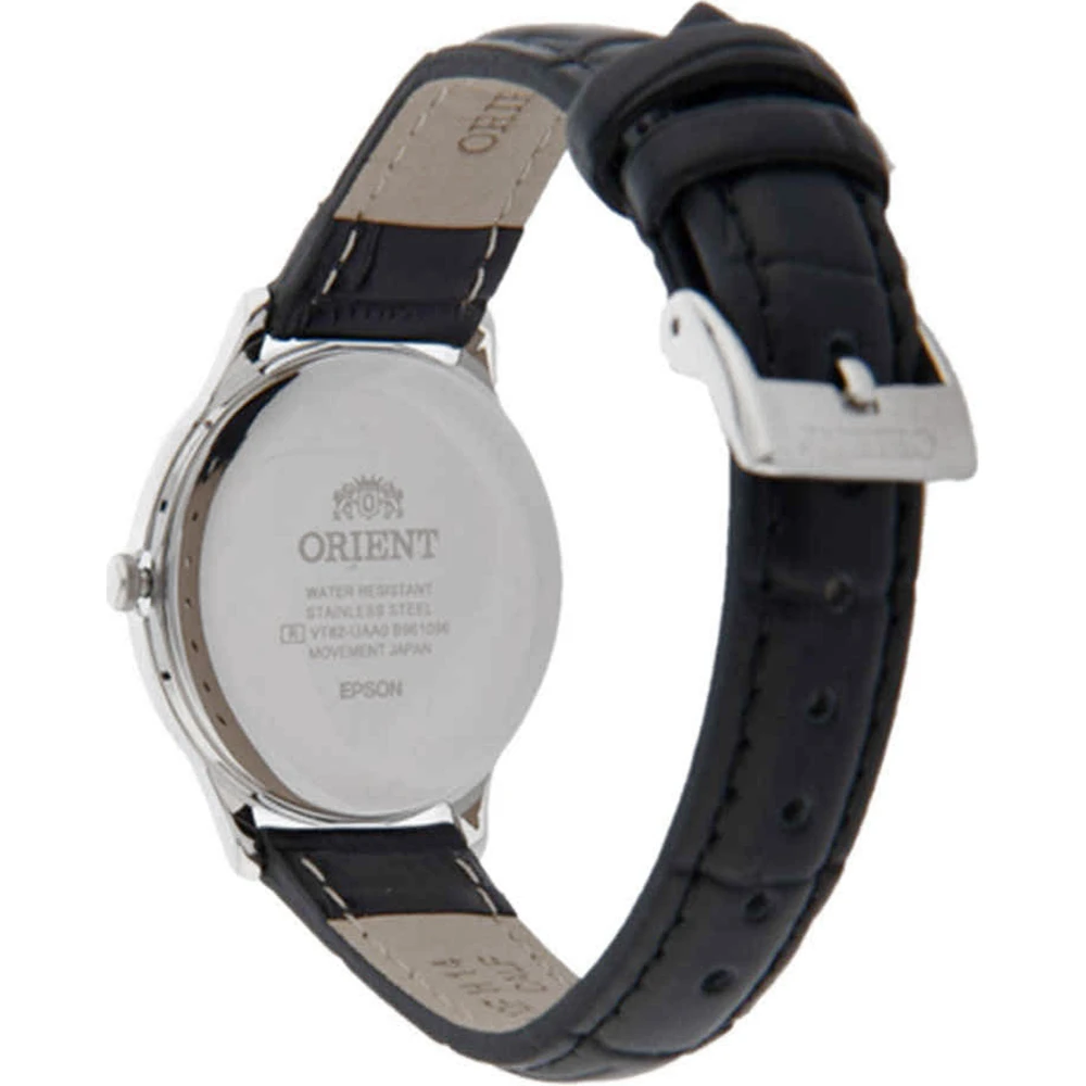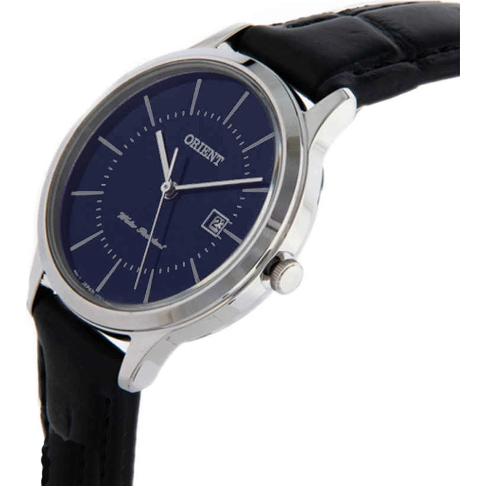 This Orient watch has a case made of stainless steel with a diameter of 30 mm and is fitted with a leather band. Inside the case lies a Orient movement and the watch features a Mineral crystal.