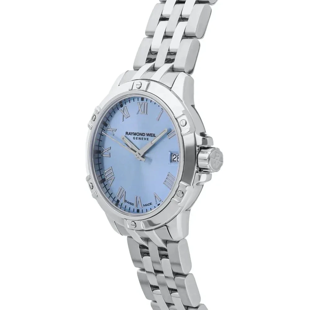 This Raymond Weil watch has a case made of stainless steel with a diameter of 30 mm and is fitted with a metal band. Inside the case lies a ETA movement and the watch features a Sapphire crystal.