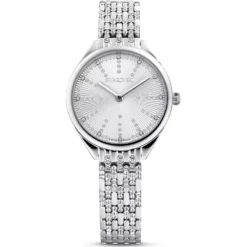 This Swarovski watch has a case made of stainless steel with a diameter of 30 mm and is fitted with a metal band. Inside the case lies a Ronda movement and the watch features a Mineral crystal.