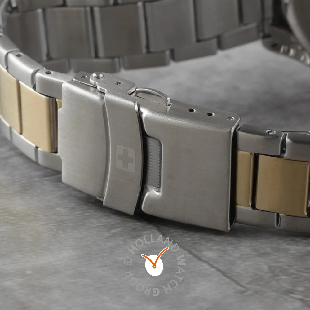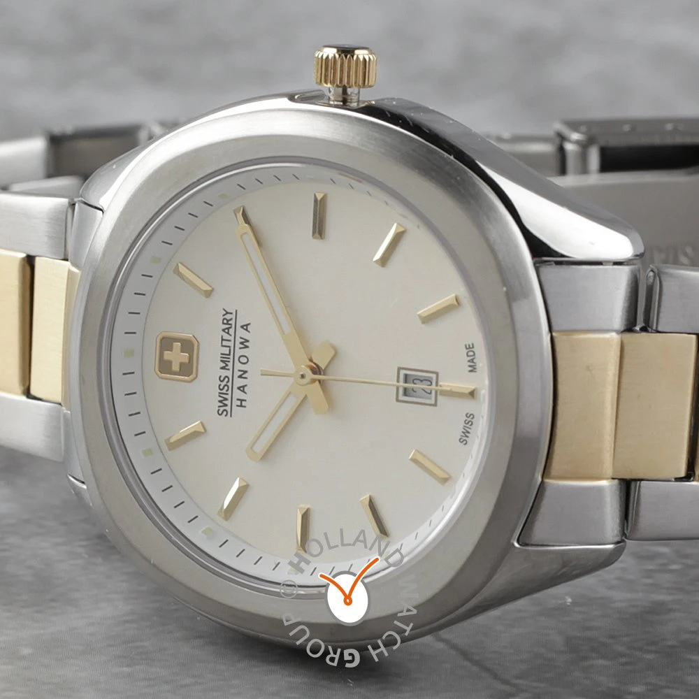 This Swiss Military Hanowa watch has a case made of stainless steel with a diameter of 36 mm and is fitted with a metal band. Inside the case lies a Ronda movement and the watch features a Sapphire crystal.