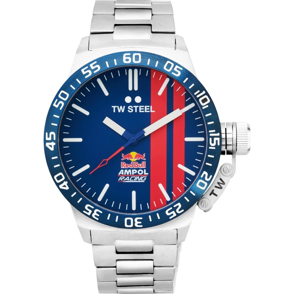 This TW Steel watch has a case made of stainless steel with a diameter of 45 mm and is fitted with a metal band. Inside the case lies a Miyota movement and the watch features a Hardened mineral crystal.