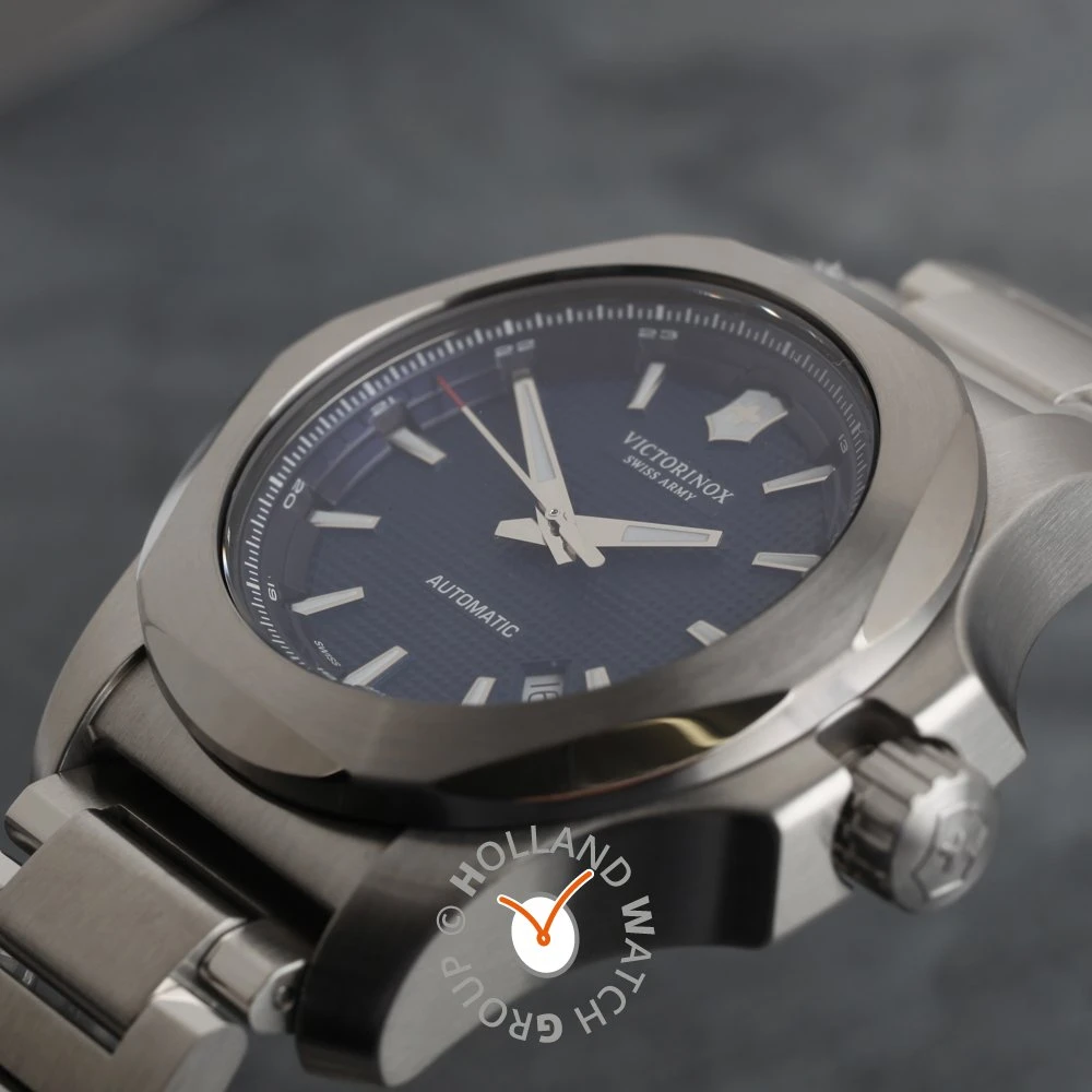 This Victorinox Swiss Army watch has a stainless steel case 43 mm in diameter and is fitted with a metal strap. Inside the case lies a ETA movement and the watch features a Sapphire crystal.