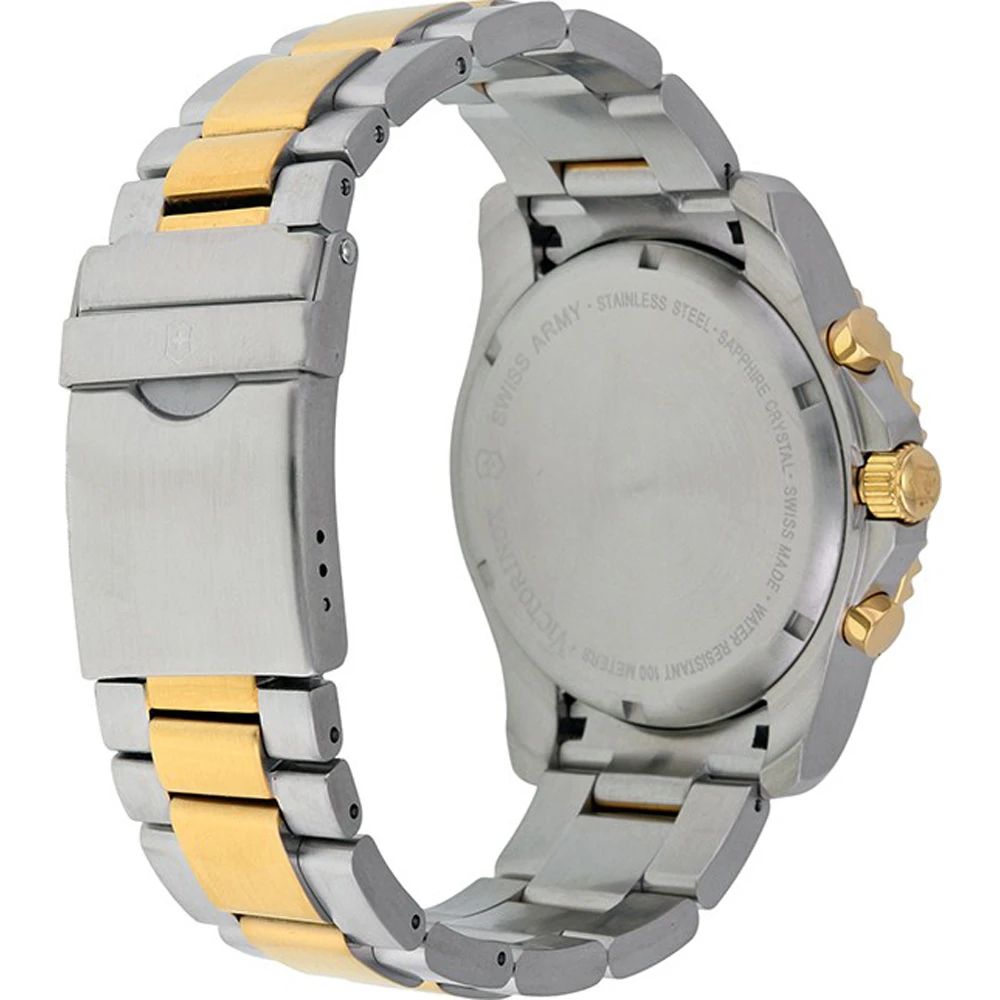 This Victorinox Swiss Army watch has a case made of stainless steel with a diameter of 43 mm and is fitted with a metal band. Inside the case lies a Ronda movement and the watch features a Sapphire crystal.