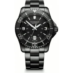 This Victorinox Swiss Army watch has a case made of stainless steel with a diameter of 43 mm and is fitted with a metal band. Inside the case lies a Ronda movement and the watch features a Sapphire crystal.
